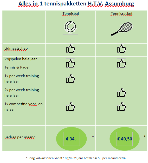 - Een alles-in-1 tennispakket wordt aangegaan voor de duur van één (1) jaar